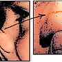 ===>因為常常擦鼻子, 所以在鼻子上會有一條擠壓出來的.....皺紋